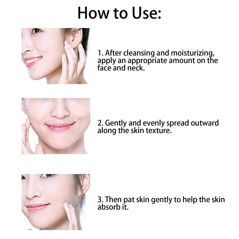 1. After cleansing and moisturizing, apply an appropriate amount on the face and neck.