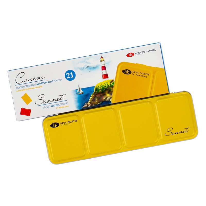 Sonnet 21 Studio 2.5 ml full pans Watercolor Paint Set in Metal Case by Nevskaya Palitra