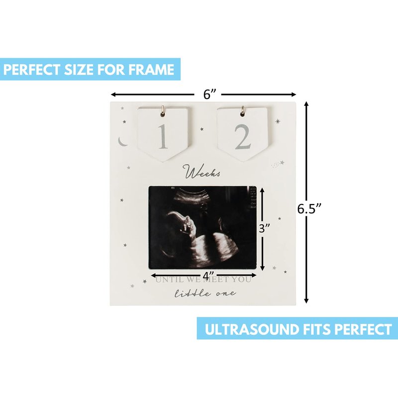- ❤ EASY TO USE – Simple to use! Just add your sonogram picture in our 4”x3” opening. And just stand it at your bedstand or any place. The Frame comes with an opening for the ultrasound photo and numbers to keep track on the weeks the scan was taken, number of pregnancy weeks! Best Pregnancy announcement! Great for announcing pregnancy to husband or baby announcement for grandparents.