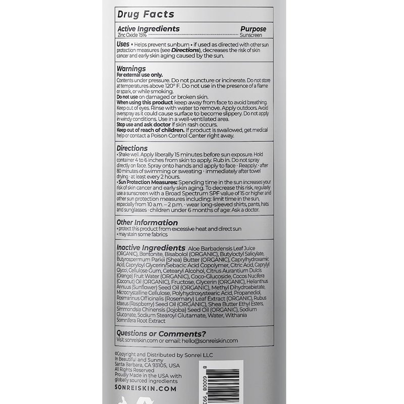 Sonrei Sea Clearly is a 70% organic clear sunscreen mist providing UVA/UVB protection for all skin types and pigments. Our proprietary continuous mist bonds sunscreen ingredients and antioxidants while being gentle and pleasant feeling on skin. Spray on this clear ultra-sheer formula for water & sweat resistant protection and hydration. Infused withโฆ Vitamin C, a superstar antioxidant that helps protect against damage caused by free radicals Vitamin E, to help hydrate and strengthen the skin barrier Ferulic Acid, to increase photo-protection and enhances the stability and efficacy of Vitamins C and E Additional Benefits: Passes US FDA 80 minute water resistance test Free of Oxybenzone and Octinoxate Stays where it is applied and wonโt run Benefits: Broad Spectrum UVA/UVB Protection with Antioxidants Water Resistant (80 Minutes) Aerosol Free Safe for Face & Body Use Vegan Gluten Free & Non-GMO Safe Against Animal Cruelty Skin Type Agnostic Non-Irritating & Non-Comedogenic Fragrance Free Paraben & PABA Free Non-Greasy & Non-White Hypoallergenic.