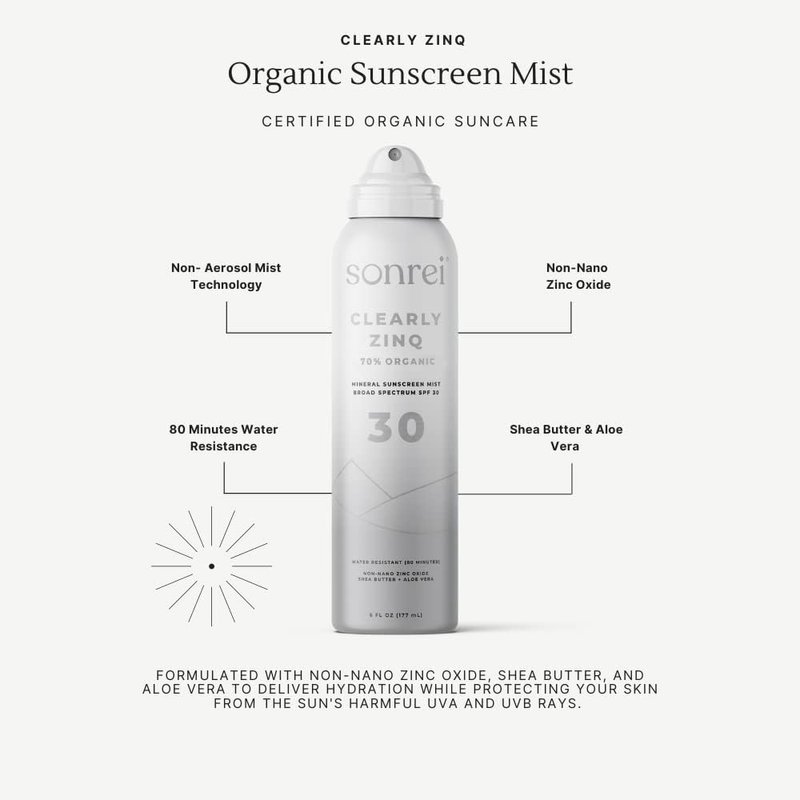 Sonrei Clearly ZinQโข Mineral Sunscreen Mist | SPF 30, Broad Spectrum, Transparent | Vegan, Water Resistance, Non-Greasy | Ideal for Face & Body (6 Fl Oz (Pack of 1))