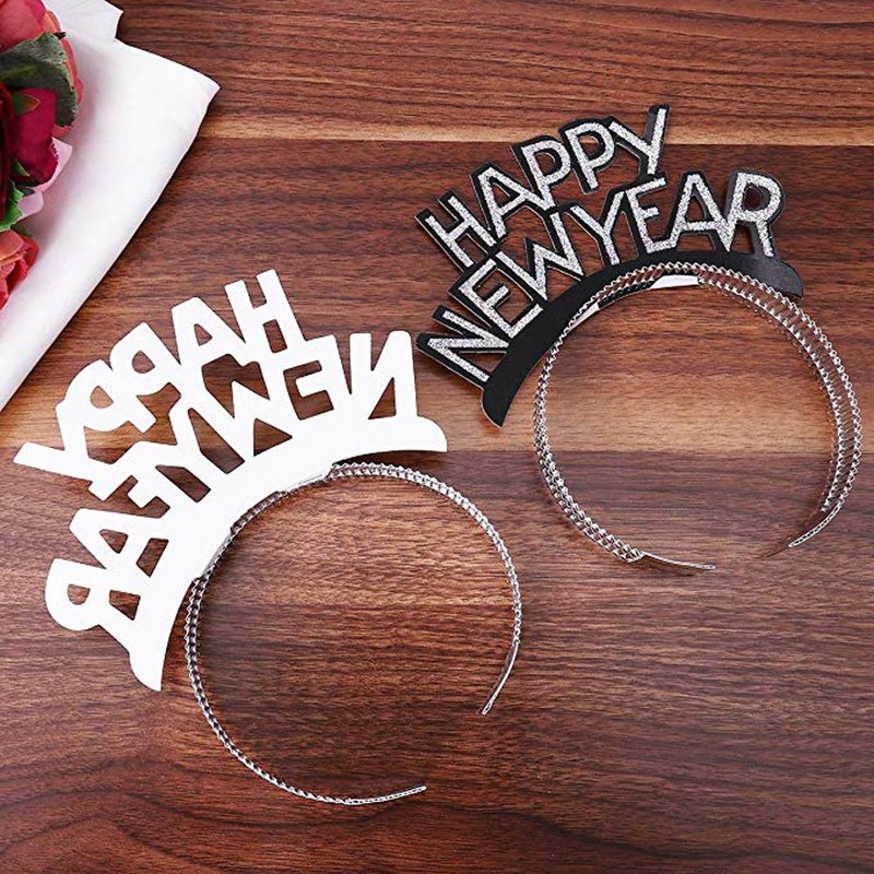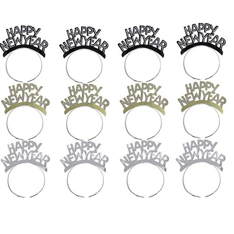 Soochat Happy New Year Headband Tiara New Years Eve Party Supplies Gold Silver Black 12 Pieces