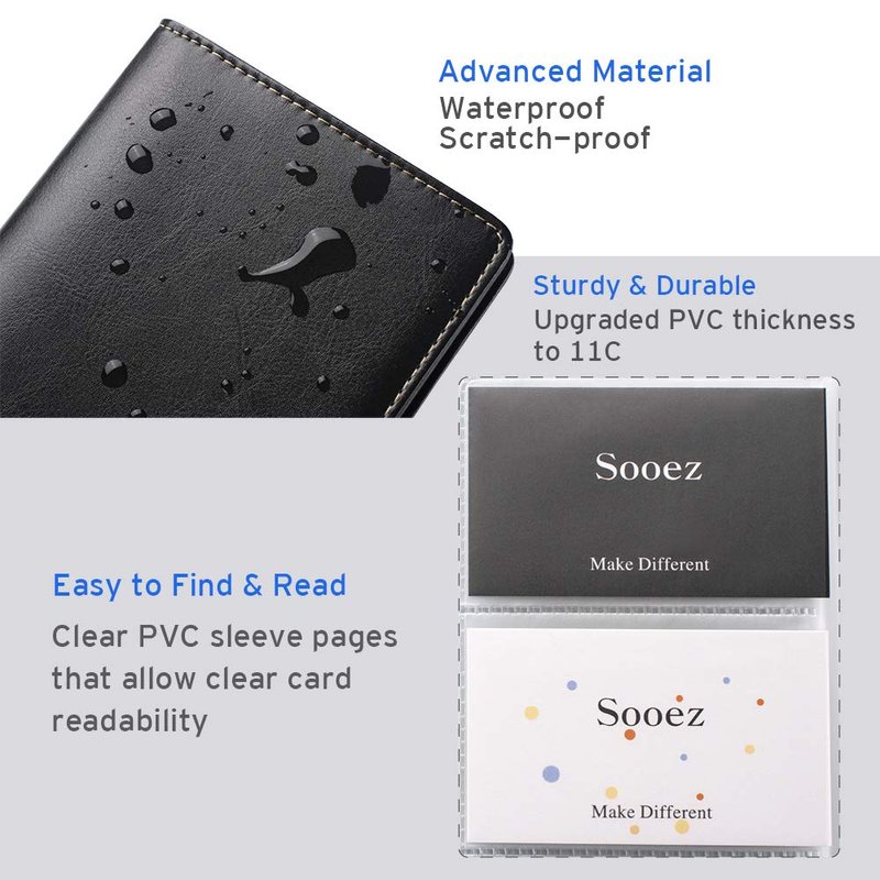 Sooez Leather Professional Credit Card Holder, Business Card Book Holder Organizer 240 Card Capacity, PU Credit Card Organizer for Men&Women, Credit Card Binder Name Card Gift Cards Booklet (Black)