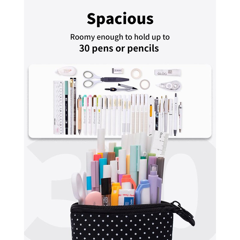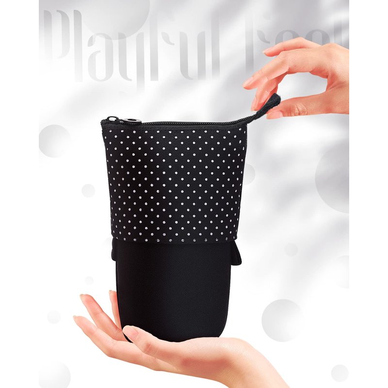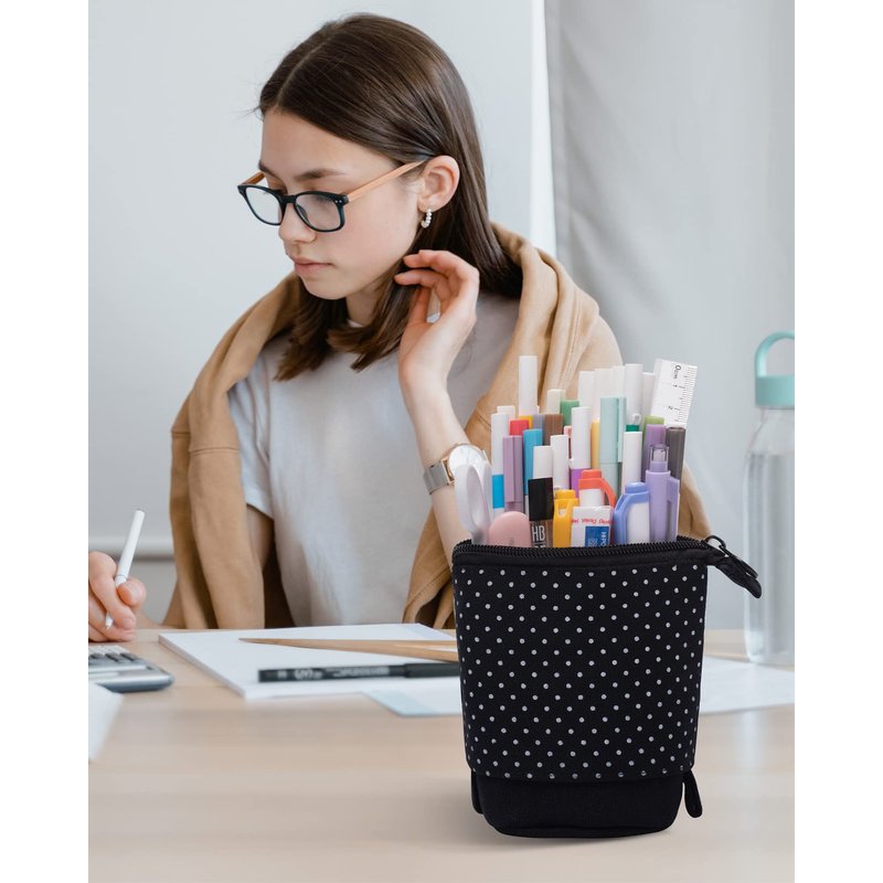 Sooez Pencil Case works in duality as a carrying case and a pencil holder, standing up for easy use. Great for pencil pouch, makeup bag, office use. Age of Application: 3 yrs+.