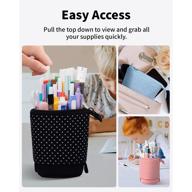 - Telescopic Design for Easy Access - Pull the top down with handles on both sides. It stands upright like a pen holder so you can easily grab what you need without digging through the bag. Slide up to transform it into a portable bag, then packing your pens won't be a hassle anymore.