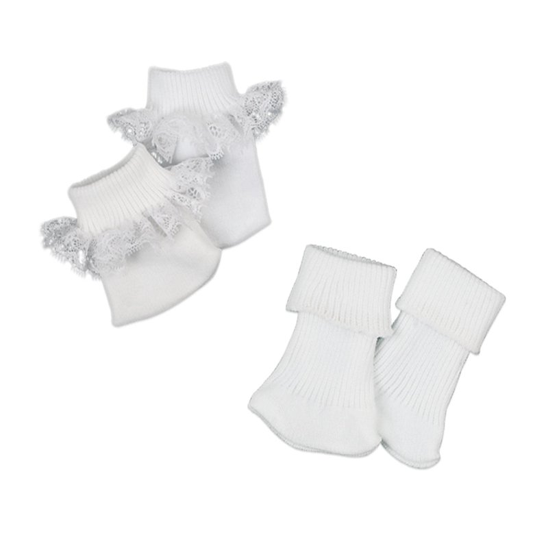 - DETAILED: These white socks are exactly like the pair your little one has for themselves. Dressing their doll for the day helps develop fine motor and daily living skills.