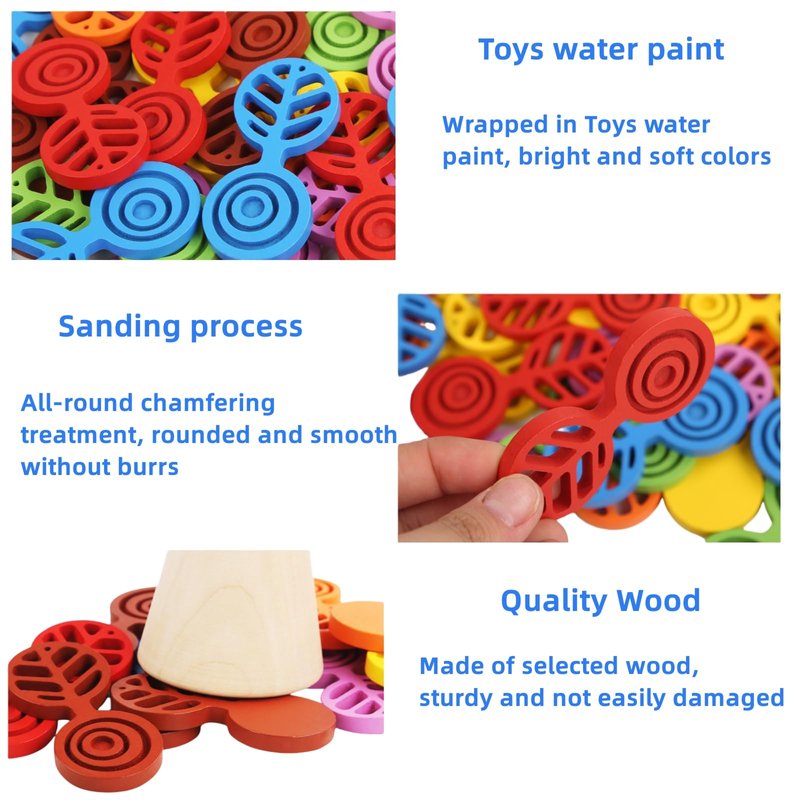 - Joyful Stacking Experience: This wooden stacking tree is a creatively designed toy with vibrant colors and safe materials. By stacking the wooden blocks to form a tree or other shapes, children can enjoy the happiness of assembling on their own.