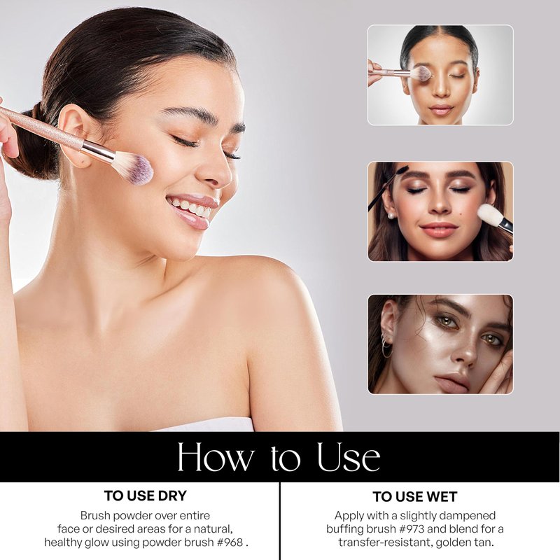 - Use as a contour, or lightly swipe it all over the face for a natural-looking sun tan