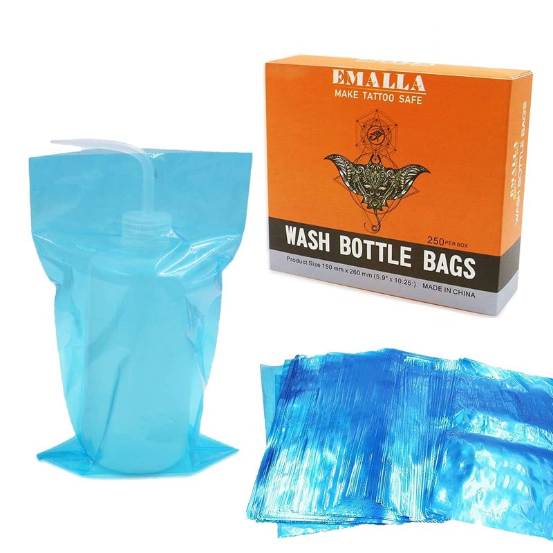 Tattoo Wash Bottle Bags, SOTICA 250pcs Wash Bottle Bags Covers Disposable Squeeze Bottle Bags Covers for Wash Bottles Tattoo Cleaning Tools Tattoo supplies(blue) WHAT U GET - Get 250PCS tattoo bottle wash bags, neatly packed in a dispenser box. Each tattoo wash bottle bag measures 150mm x 260mm (5.9" x 10.25"), making it suitable for a wide range of bottles, not just tattoo wash bottles. UNIQUE DESIGN - SOTICA tattoo wash bottles bags come with individual packaging box.Top opening design, easy to extract tattoo bottle bags. Transparent blue tattoo wash bottle bags,so you can see the scale of the tattoo bottle while using. PRACTICAL PROTECTION - SOTICA tattoo bottle covers can not only protect your tattoo wash bottles from splashes of liquids, but also be disposable with a easier and more time-saving process. Better isolate the inside and outside of the bottle bags. PROFESIONAL - Tattoo wash bottle sleeves are perfect for tattoo artists and beginners. SOTICA Tattoo bottle bags are specially designed to cover and protect the wash bottle completely, ensuring a smooth and efficient cleaning process. BRAND SERVICE - SOTICA promise to offer a satisfaction guarantee. If you have any questions or concerns, please feel free to contact us. We're committed to provide you with a 100% positive shopping experience.