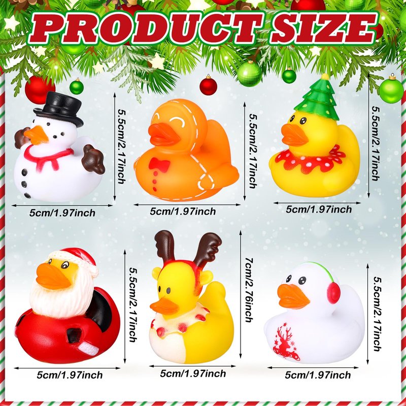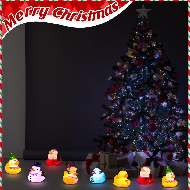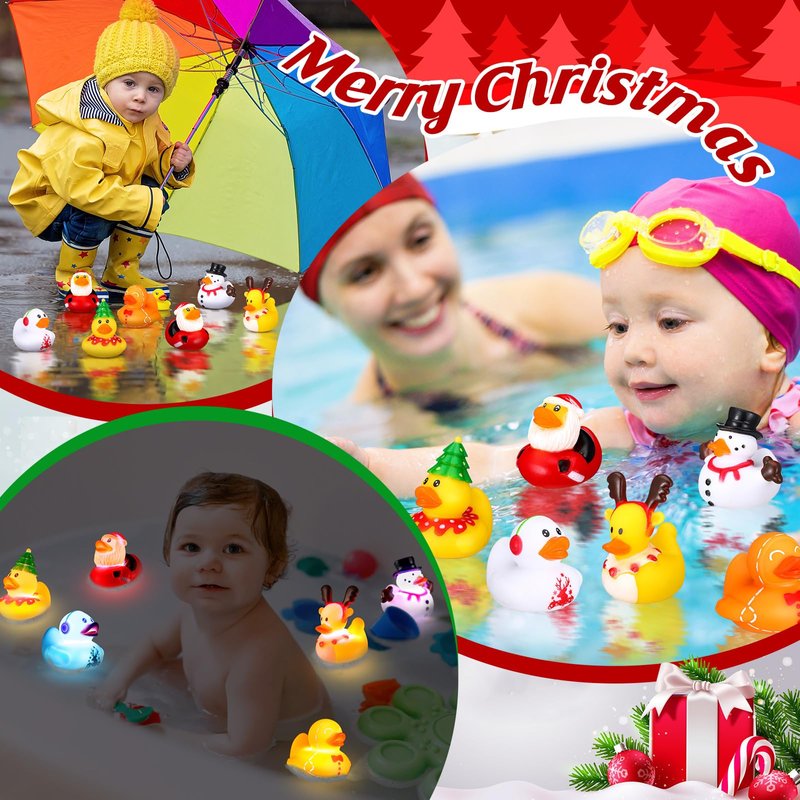 - Christmas-Themed Design: Our delightful set includes 12 enchanting light-up duck bath toys, each featuring charming Christmas themes. With 6 unique styles, these duckies are irresistibly cute and perfect for spreading holiday joy. Imagine the smiles and laughter as your little ones enjoy bath time with their new festive friends