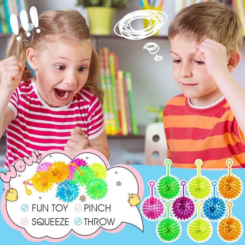 Sotiff 27 Pcs Light up Ball Spiky LED Bouncy Ball Flashing Squeaky Ball Multicolor Puffer Balls Stress Relief Balls Rubber Sensory Toy Carnival Prizes Bulk Party Favors for Teens, Adults, Children