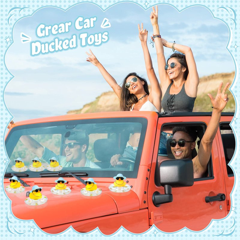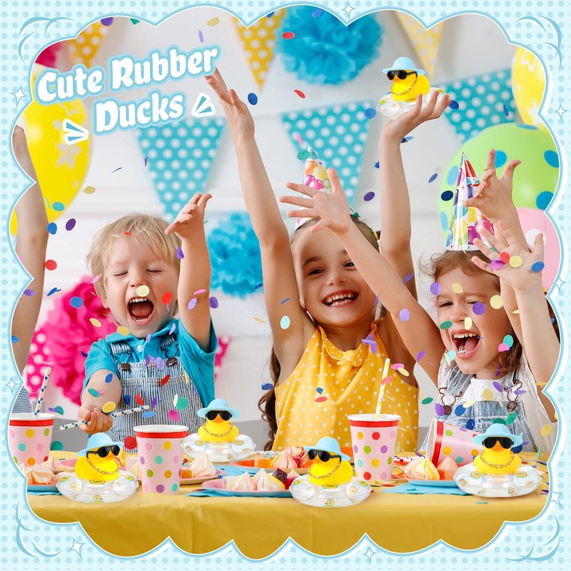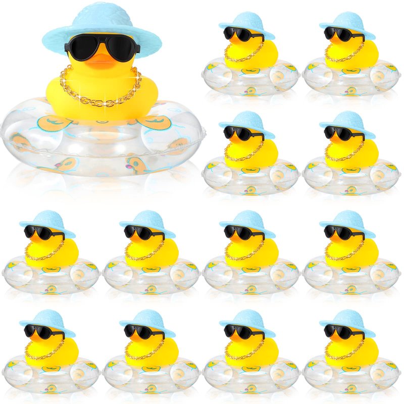 - Cute Duck Decorations: you will receive 24 cute rubber ducks with clear swimming rings, blue hats, gold necklaces and glasses, there are enough quantities to meet your decoration needs and replacements, you could share them with other people