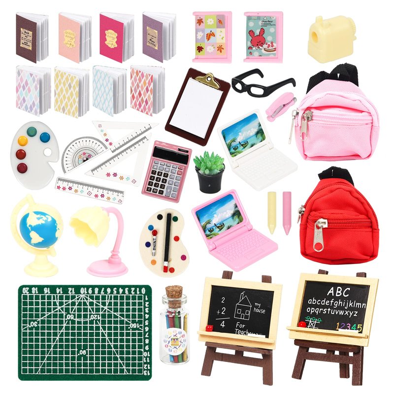 - Fashion Design:These exquisite doll house school theme accessories are very DIY for some learning scenes.Each accessory has a unique and cute style.Through your matching,you can fully mobilize your creativity and imagination,perfect for you to play with your friends.