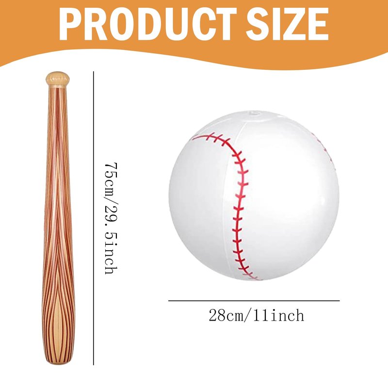- About size: The measurement of inflatable baseball ball is 28 cm/ 11 inch, and the inflatable baseball bat is approx. 75 cm/ 29.5 inch, appropriate sizes for adults, teenagers and kids to use