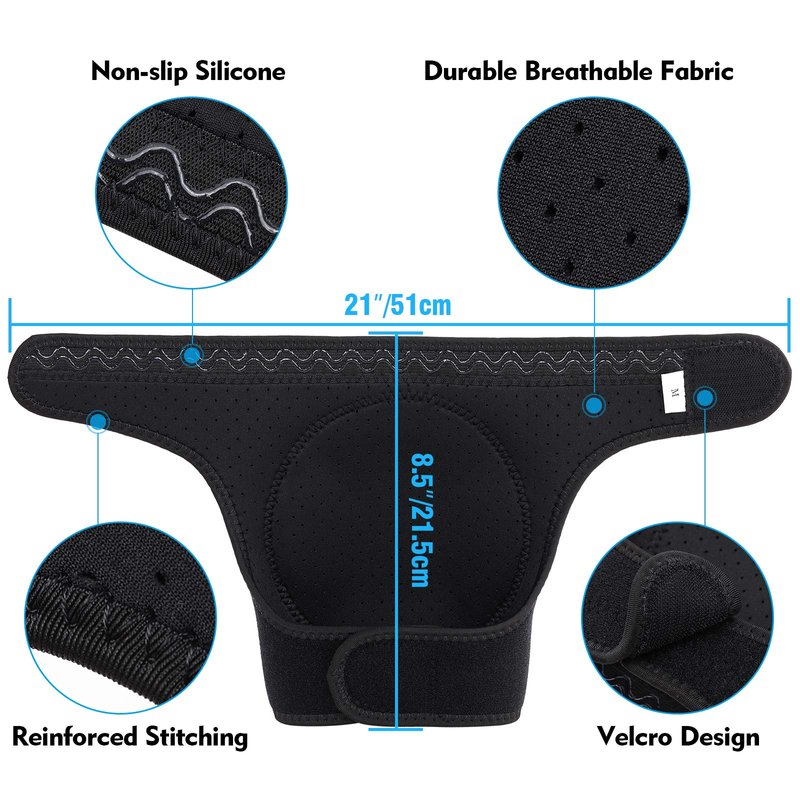 Easy to wear---Adjustable Velcro design, fit for 13.0-21.7 in (33-55cm) thigh circumference, pls measuring on 4" above your knee. Suitable for people weighing between 100-220lb.