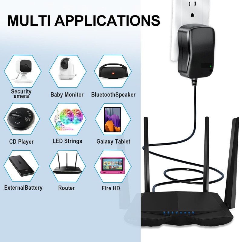 - MULTI PURPOSE COMPATIBILITY: This 3V-12V AC/DC Adapter replacement comes with 8 interchangeable Tips and 7 adjustable Voltages, which makes it fits 95% of AC/DC home appliances, Such as Tablet PC, LED Strip Lights, Keyboard, Scales, Routers, Speakers, CCTV camera system, USB Charging Camera, DVD Player, CD player, USB hub, recorder, exercise bike, clock, trail camera, weather station and more 3V to 12V Household Electronics