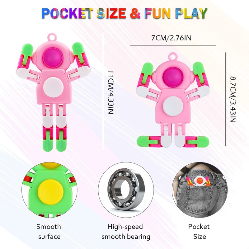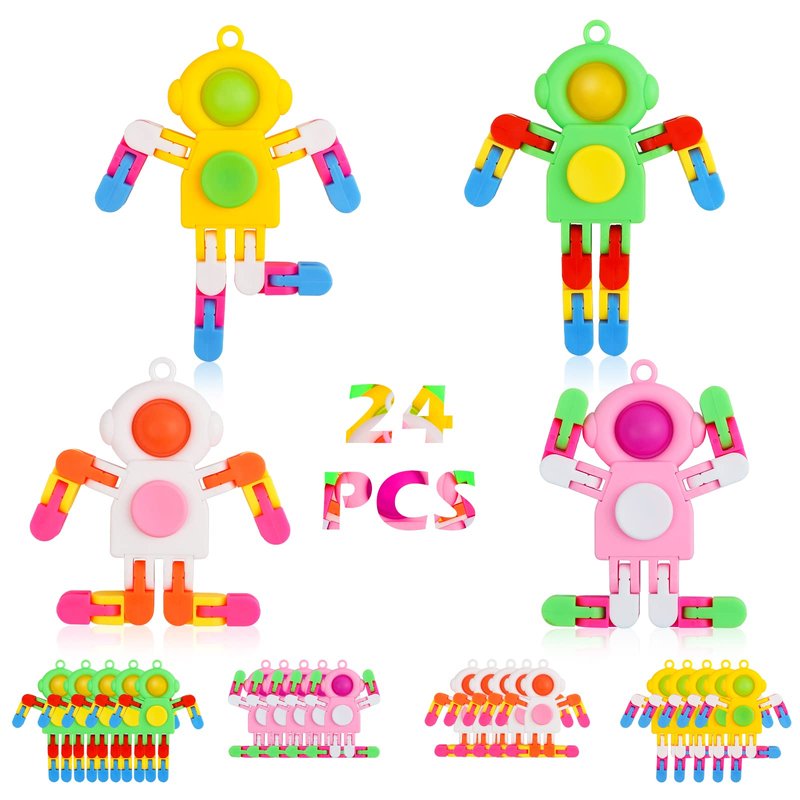 - 【3 IN 1 FIDGET SPINNING TOYS】You will get 24 pieces colorful 3 in 1 sensory fidget toys in one package. This sensory fidget toy with deformable design has wacky track leg, spinning body and simple dimple on head, can be changed into various shapes according to your imagination and hold the center body to rotate, and press the dimple on head to make a satisfied popping sound. Also you can hang them as key chain.