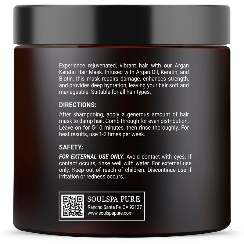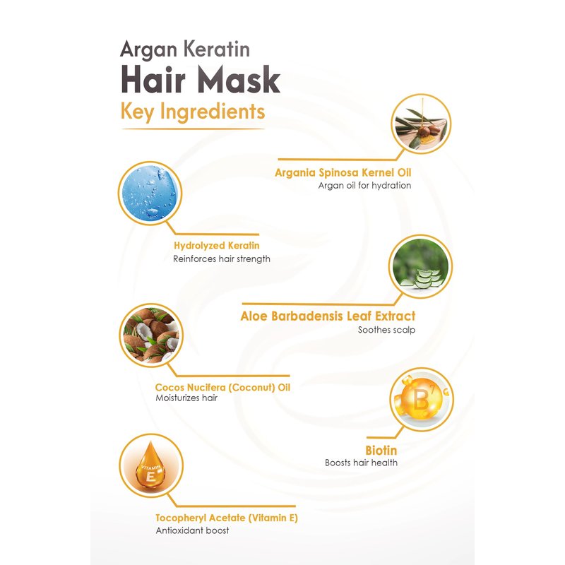 - 𝐏𝐫𝐨𝐟𝐞𝐬𝐬𝐢𝐨𝐧𝐚𝐥-𝐐𝐮𝐚𝐥𝐢𝐭𝐲 𝐊𝐞𝐫𝐚𝐭𝐢𝐧 𝐓𝐫𝐞𝐚𝐭𝐦𝐞𝐧𝐭: Transform your hair with our Keratin Hair Mask. This luxurious formula, with Argan Oil and Keratin, delivers salon-like results, providing deep conditioning and noticeable improvement in hair texture and appearance.