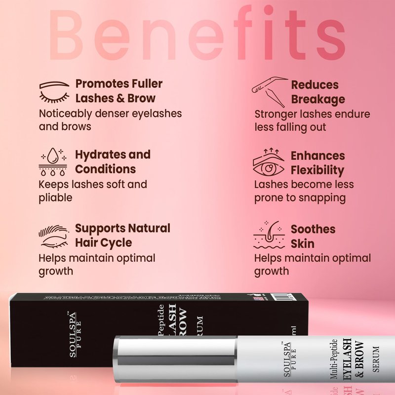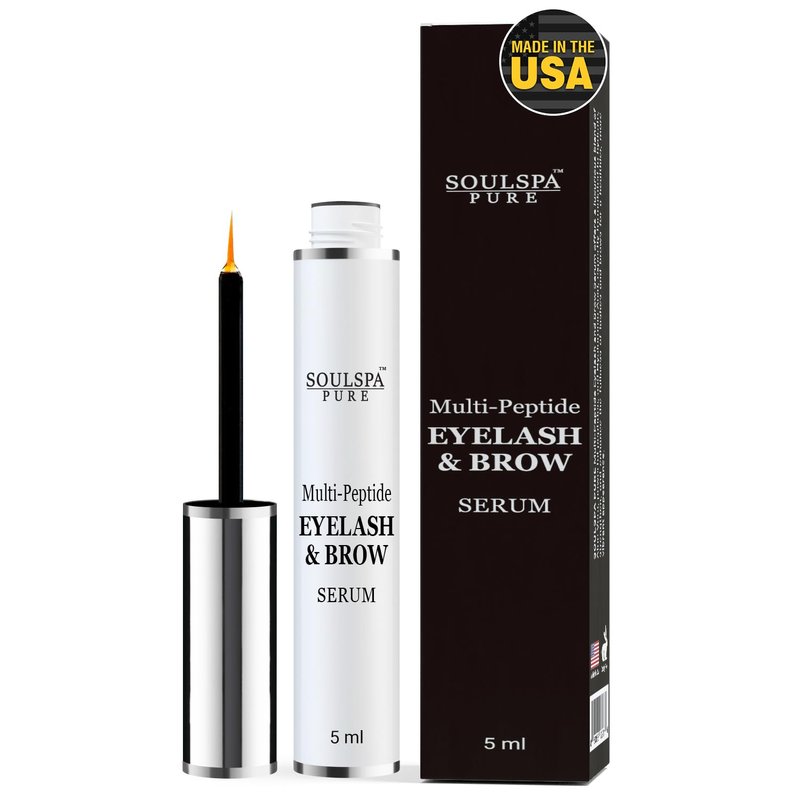 SOULSPA PURE Eyelash Serum - Advanced Brow & Eye Lash Serum with Biotin & Peptides - Nourishing Serum & Eyelash Growth Serum & Conditioner - Promotes Thick, Healthy Eyelashes & Brows - 5 ML