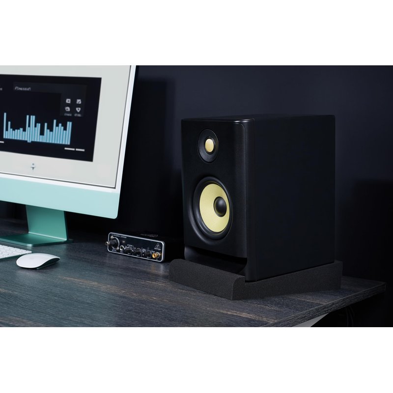 Everything that can vibrate will color the sound and that includes the surface that the monitors are mounted on. The SMPad 5 decouple the energy from the supporting surface which results in a significantly improved audio sound.