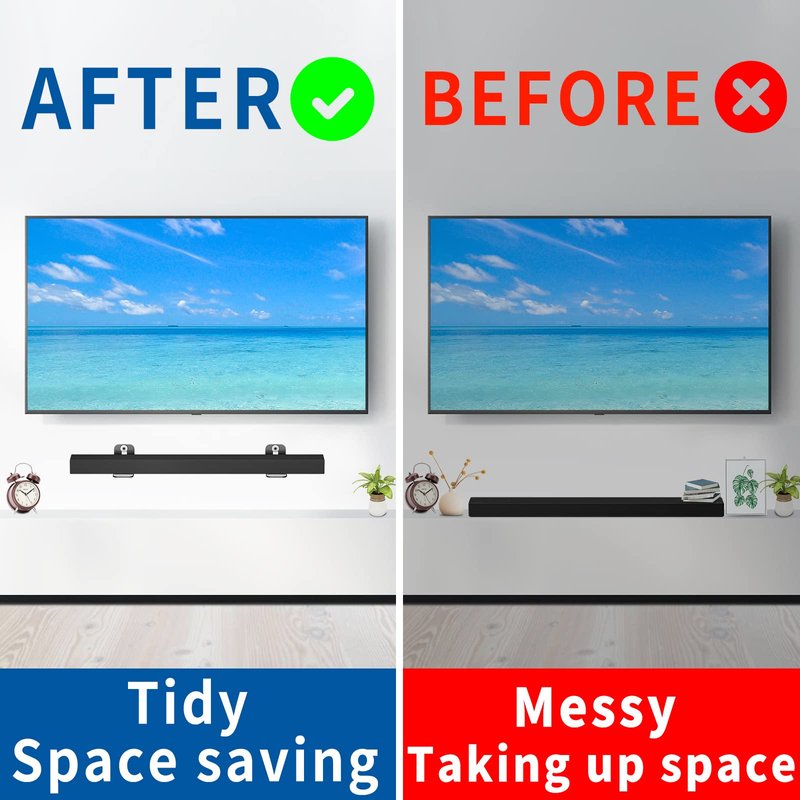 - Upgrade Your Setup: Mounting your soundbar on soundbar wall mount bracket is more effective than placing them on the table, it can better enhance the sound quality of the soundbar, allowing you to enjoy a clearer surround sound experience.