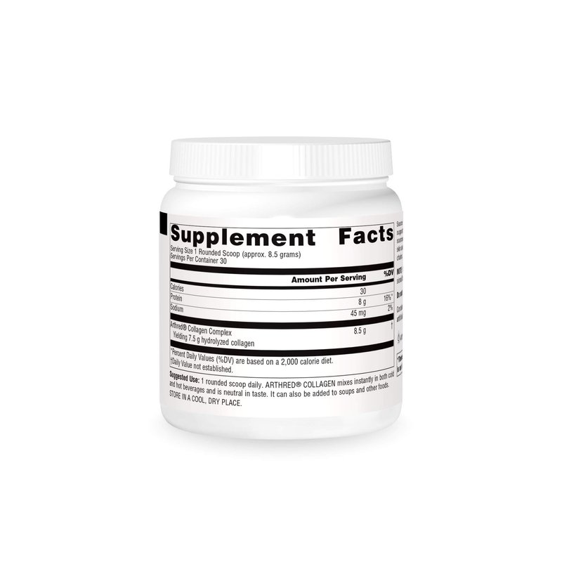 - Suggested Use: 1 rounded scoop (approx. 8.5 grams) daily. Arthred Collagen mixes instantly in both cold and hot beverages and is neutral in taste. It can also be added to soups and other foods.