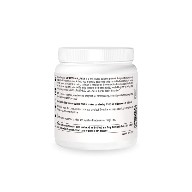 - Source Naturals Arthred Collagen is a hydrolyzed collagen product designed to nutritionally support healthy joint function. Arthred was originally developed and patented in Germany from bovine sources, based on research showing collagen’s benefits for the connective tissue needed for healthy skin and joints.