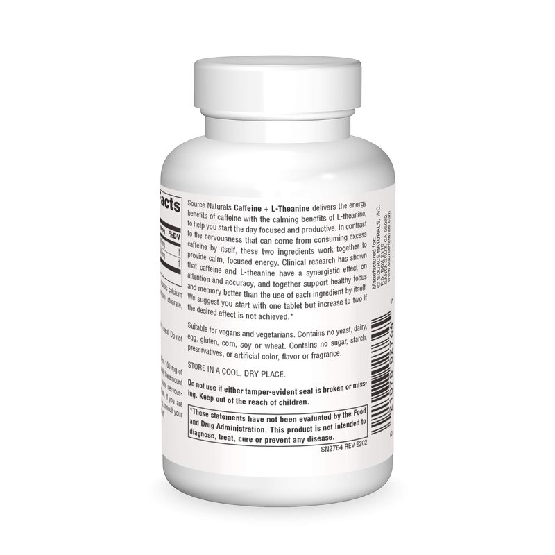 - COMBINED BENEFITS: Source Naturals Caffeine + L-Theanine delivers the energy benefits of caffeine with the calming benefits of L-theanine.