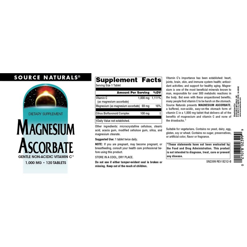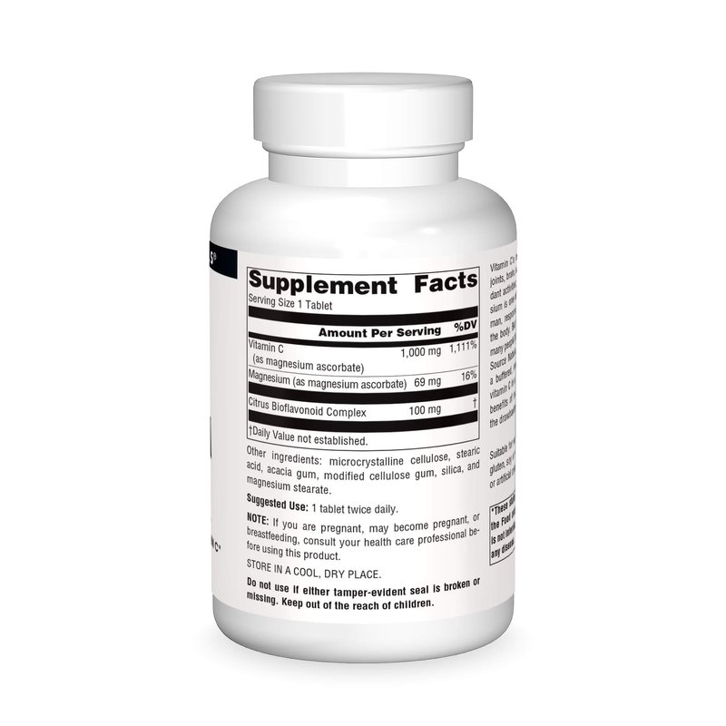 Source Naturals Magnesium Ascorbate, Gentle Non-Acidic Vitamin C*, 1000mg - 120 Tablets