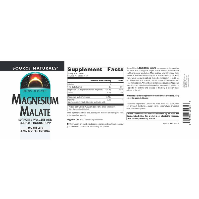 Source Naturals Magnesium Malate 3750 mg per Serving - For Energy Production - 360 Tablets
