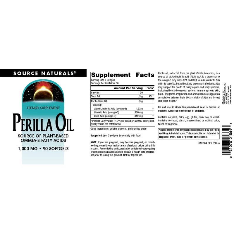 Source Naturals Perilla Oil Source of Plant-Based Omega-3 Fatty Acids, 1000 mg - 90 Softgels