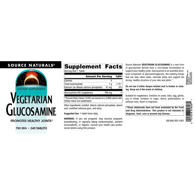 Source Naturals Vegetarian Glucosamine, Promotes Healthy Joints 750 mg Tablet - 240 Count