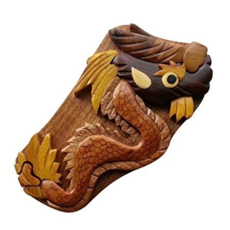 South Asia Trading Handmade Wooden Wood Intarsia Puzzle Dragon Puzzle Box (3077) - Hide Gift Cash