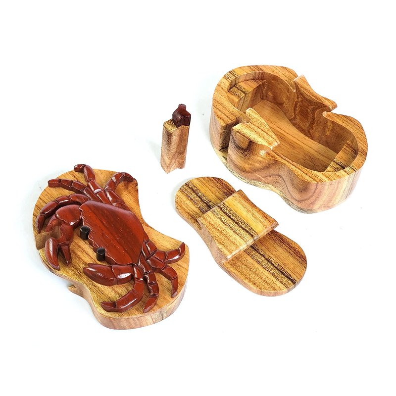 South Asian Handicrafts Crab - Intarsia Wood Puzzle Box - Handcrafted with Secret Compartment