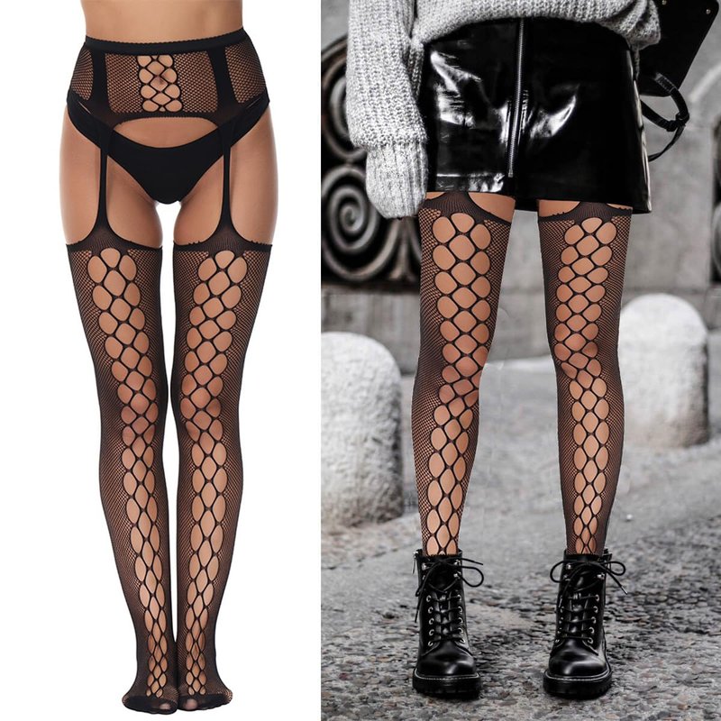 - Material: Our fishnet stockings are made of soft materials that give you a comfortable experience. The strong elasticity makes this garter belts and stocking sets suitable for more people of different body types. Trust us, your skin will love it!