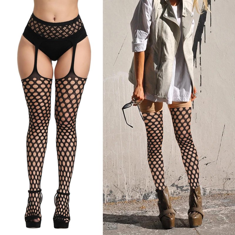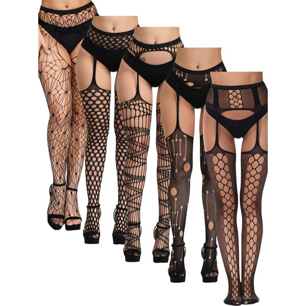 - Package: Get 5 pairs of stylish High Waist Fishnet Tights (Thongs not included) with sexy stockings for women. With more choices of Suspender Pantyhose, you can match them with your dress or shorts for any occasion.