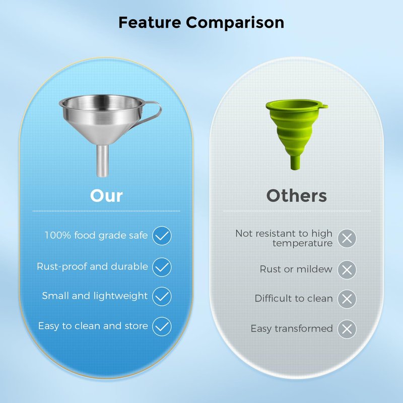 - The funnel is made of stainless steel, easy to use and clean, and effectively filters the contaminants while the resin is poured into the bottle