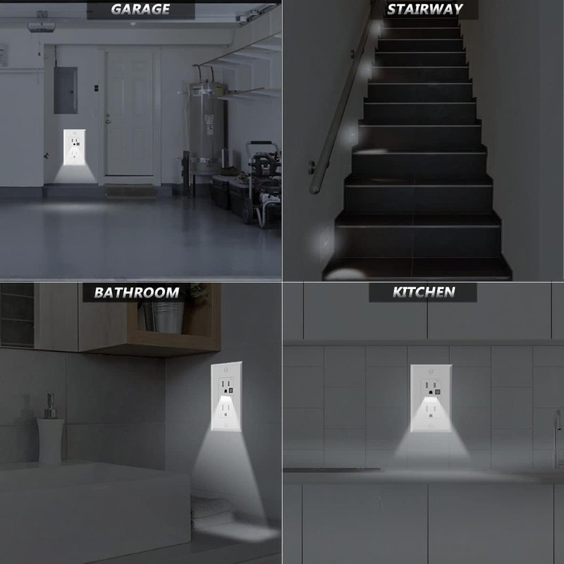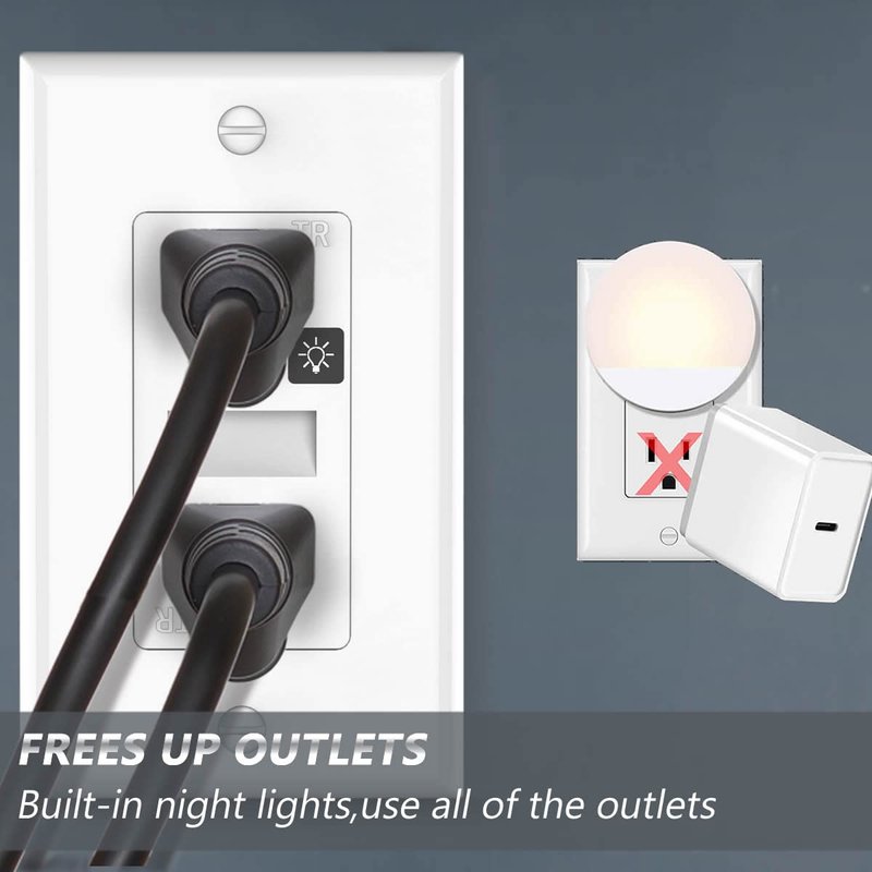 - 【Not Only A Wall Outlet】-This night light wall outlet legantly blends the features of a wall outlet and night light together, frees up outlets,get rid of bulky plug in nightlights and easily add safety and comfort by replacing your standard outlet with a LED nightlight outlet.