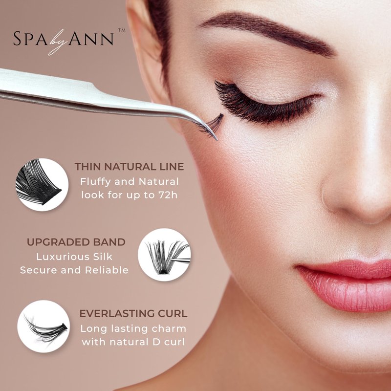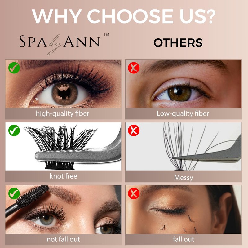 - UNLEASH YOUR CONFIDENCE: Enhance your natural beauty with the SPA BY ANN Lashes Extension Kit. This complete DIY Lash Cluster Kit allows you to achieve the perfect lashes at home, providing salon-level quality and saving you precious time and money.