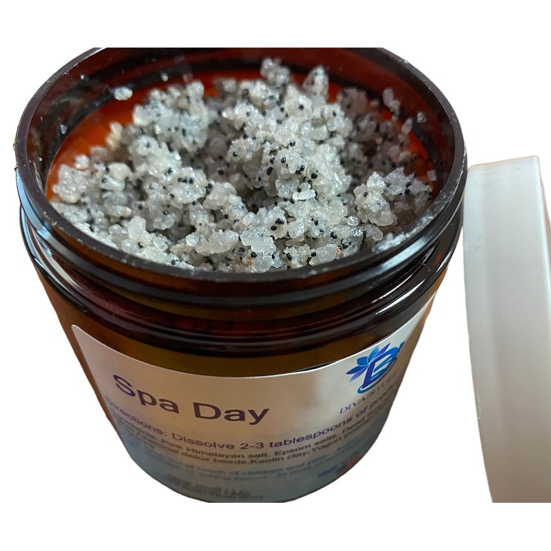 Spa Day Detox Bath Soak with Charcoal Beads, Pink Himalayan Salt, Dead Sea Salt and Kaolin Clay, 8 Ounce Jar
