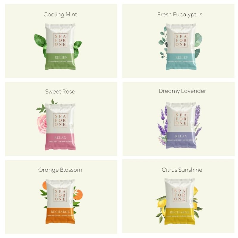 - BRING THE SPA HOME: Transform your daily shower into a luxurious spa-like getaway with Spa For One. These steamers delicately blend essential oils with your shower steam, creating a soothing spa ambiance.