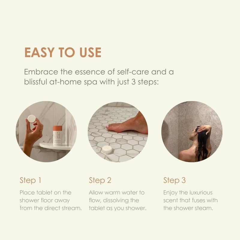 - EASY TO USE: Place one tablet on your shower floor. Once in contact with the hot shower, the natural essential oils will release a luxurious scent that fuses with the steam of the shower.