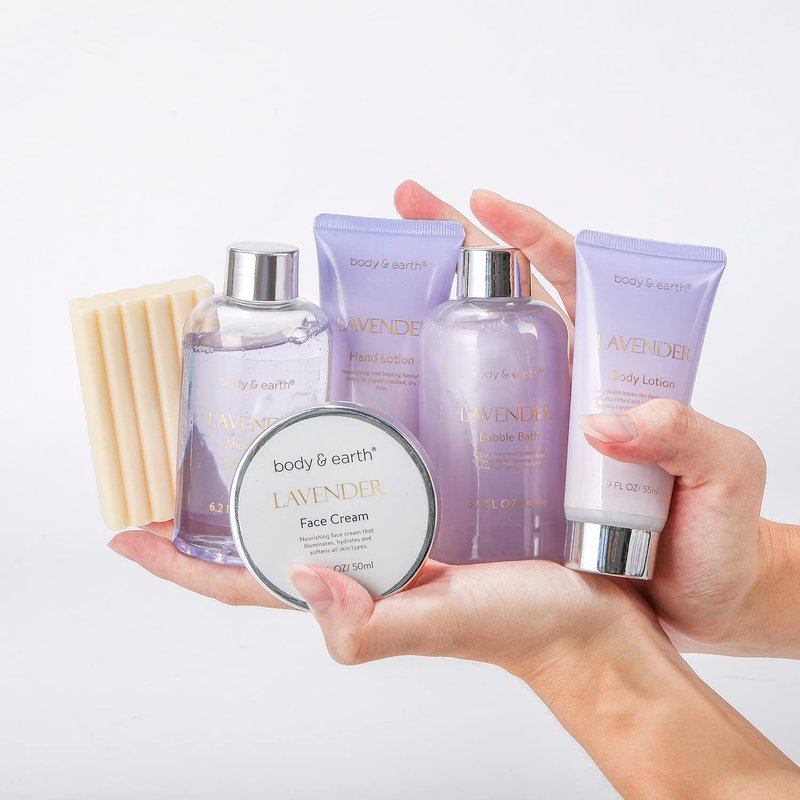 - Contents: Body&Earth women bath set includes everything you need to relaxed yourself at home, contains Bubble Bath, Shower Gel, Hand Cream, Body Lotion, Face Cream, Soap