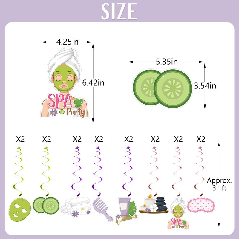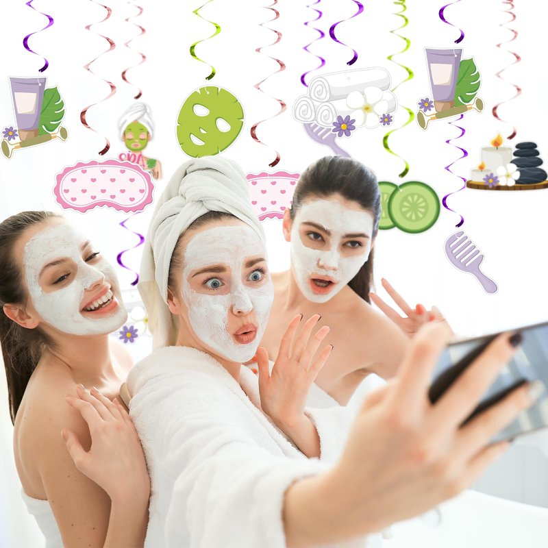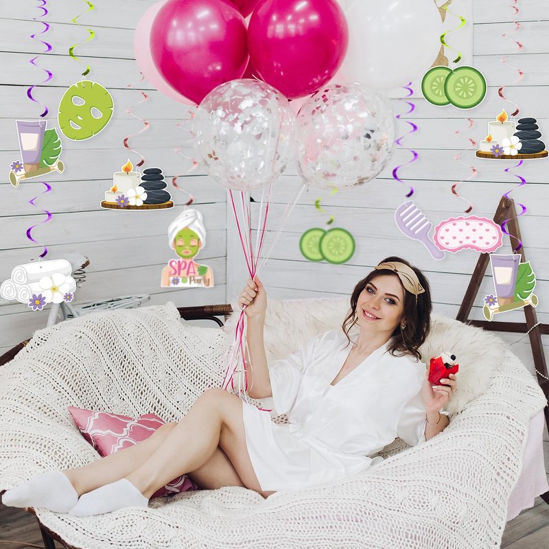 - Spa party decor: The hanging decorations can be used for birthdays, slumber parties, or any event with a spa or makeup theme indoors or outdoors.