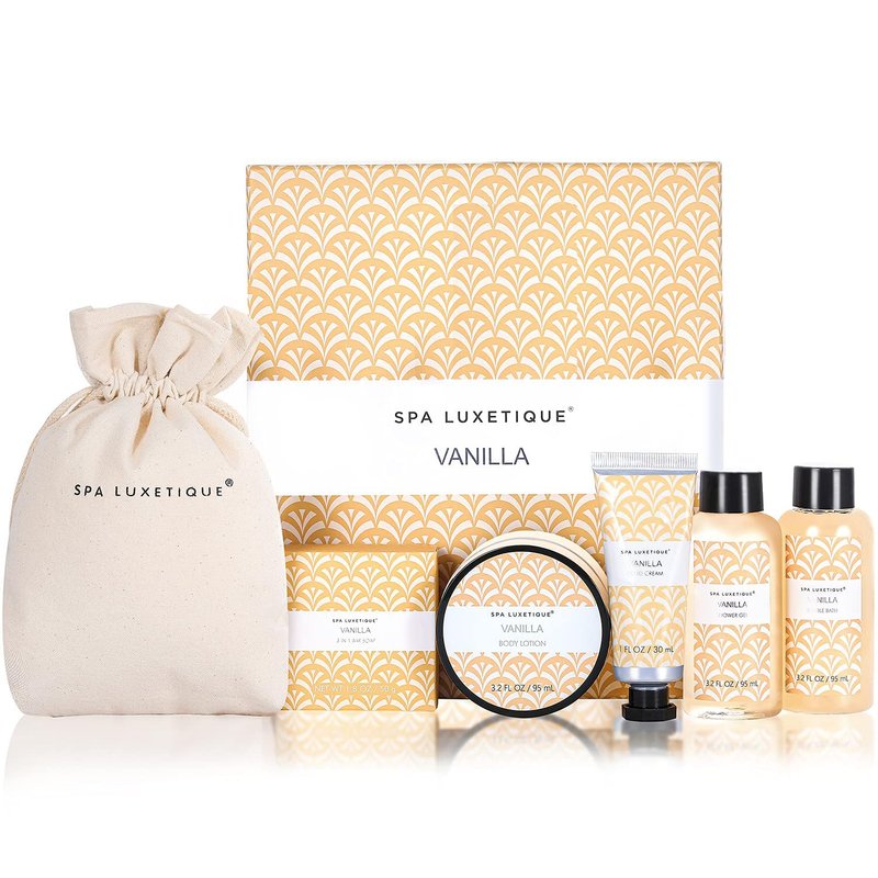 Spa Luxetique Spa Gifts for Women 6pc Vanilla Bath Sets Women Gift With Body Lotion, Shower Gel, Bubble Bath, Hand Cream, Bath and Body Gifts Set, Christmas Gift Sets, Bath Gifts for Women