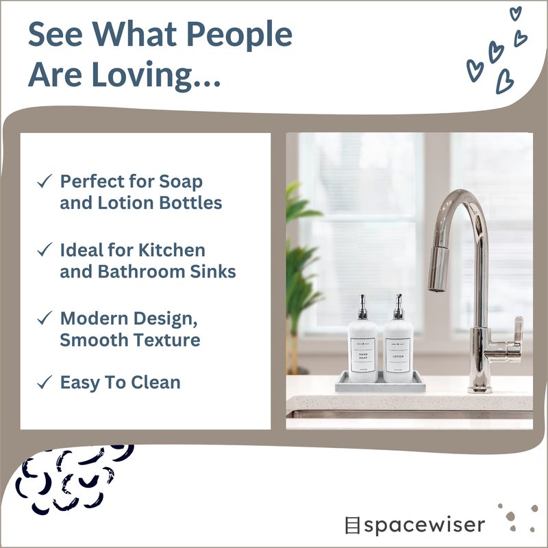 - Thoughtfully Sized – The dimensions, combined with the gentle texture, make this small tray perfect as a dish soap tray or hand soap tray- it’s ideal for a set of soap and lotion bottles, or as a ring tray, key tray, trinket tray, or bathroom sink vanity tray.