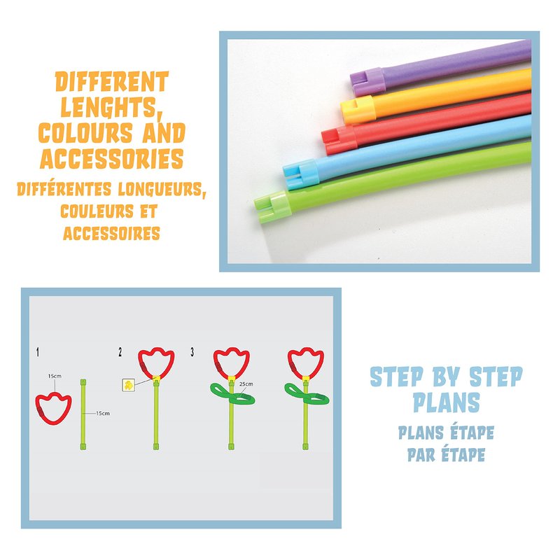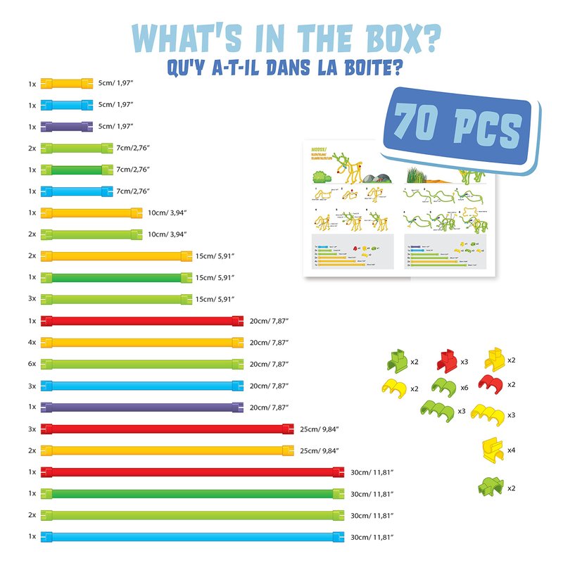 - SET WITH 70 PIECES - The extensive toy set contains a total of 70 pieces, consisting of the soft craft sticks in different lengths and colors as well as various accesories for plugging and clicking. For lots of colorfol creations!