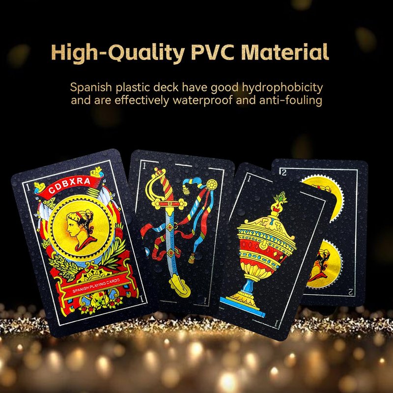 - 【Black-Gold Foil Cards Design】Each spanish playing cards is designed with black-gold foil. Very exquisite and luxurious. Reproduce the infinite value of the classic cartas españolas. Effortless shuffling for seamless readings.