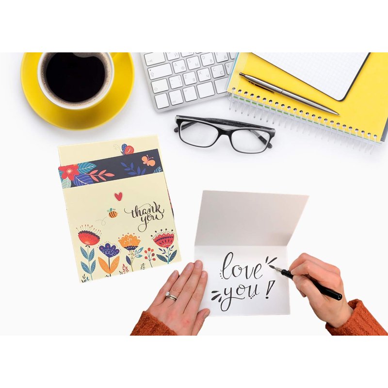 - No Smudging or Fingerprints: Our note cards are crafted with soft matte paper that won't smudge with any pen type, including pencil. You can see and feel the textured paper when you pick up our thank you cards & you'll never see fingerprints on them.