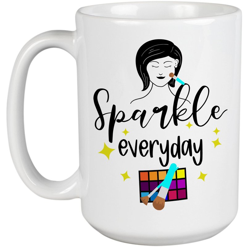 Sparkle Everyday with Eyeshadow Palette, Brushes & Woman Design - Beauty Themed Merch for Makeup Artist or Cosmetologist, Gift for Makeup Lovers & Beauticians, White Mug 15oz